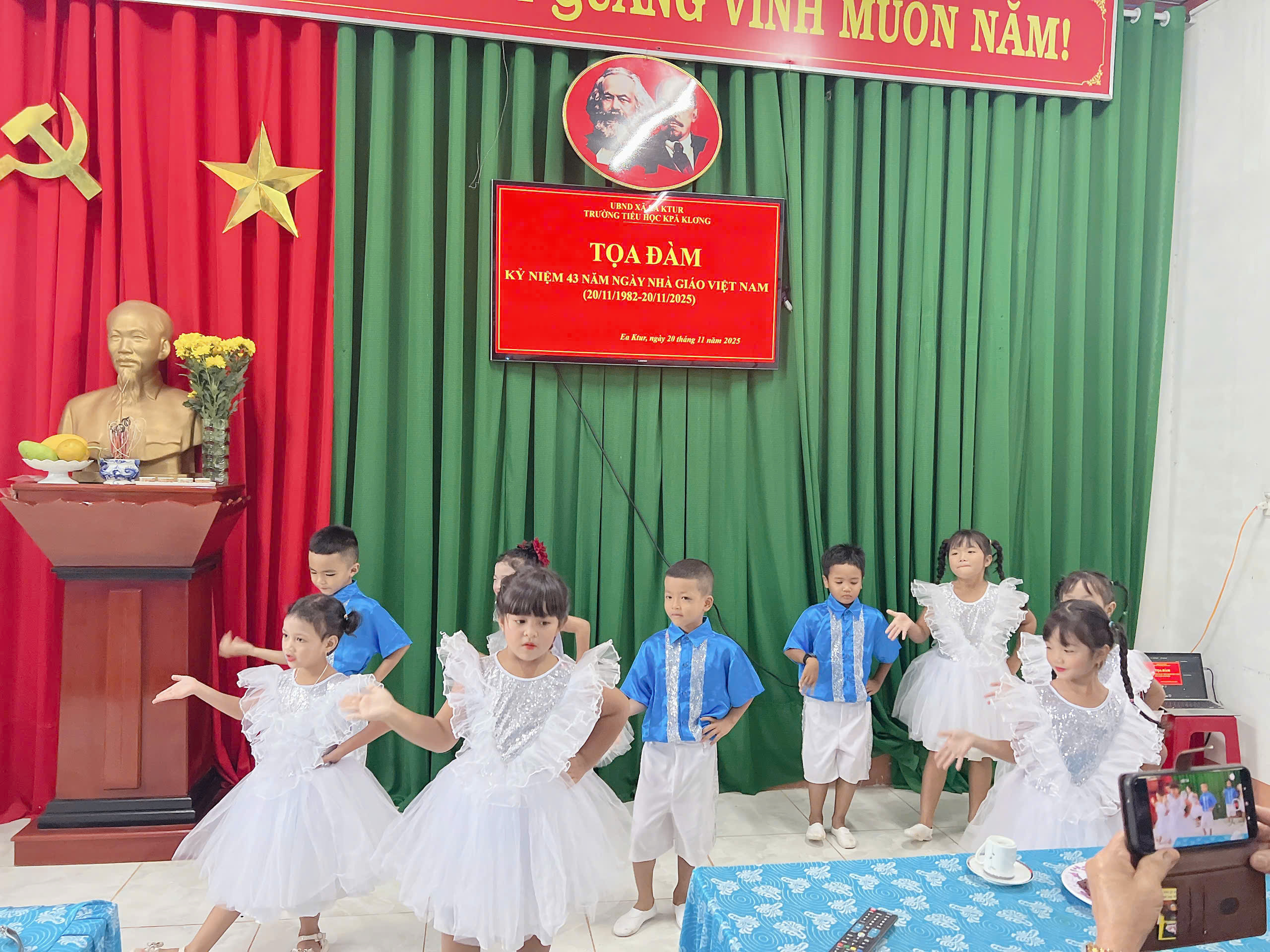 Sáng ngày 20 tháng 11, trong không khí trang trọng và ấm áp, Trường Tiểu học Kpă Klơng (xã Ea Ktur) đã long trọng tổ chức lễ kỷ niệm Ngày Nhà giáo Việt Nam 20/11 nhằm tri ân các thầy giáo, cô giáo – những người đã và đang tận tụy cống hiến cho sự nghiệp trồng người.